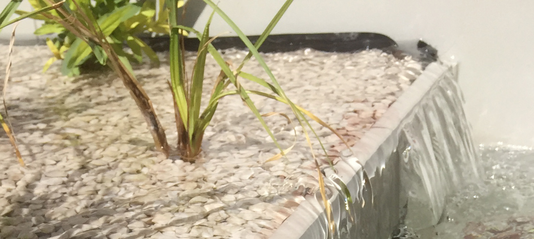 In der FLOWBOX befindet sich ein speziell entwickeltes, schwimmendes Filtermaterial, welches konstant angeströmt wird, wodurch sich darauf Biofilm bildet. So werden dem Wasser alle Nährstoffe entzogen, es wird biologisch stabil und sauber. Geerntet wird der Biofilm durch eine integrierte Luftspülung, bei durchschnittlicher Belastung erfolgt dies aufgrund des kleinen Filtervolumens ca. einmal im Monat. Die Pflanzenzone wird integriert, wodurch sich ein minimaler Flächenbedarf ergibt. Filtertechnik war noch nie so einfach!